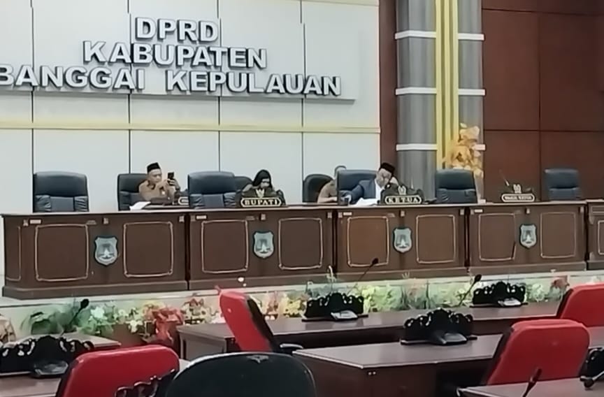 Ketua DPRD Banggai Kepulauan Arkam Supu. STh. I. MH memimpin Rapat Paripurna dengan Jumlah kehadiran anggota DPRD Bangkep sebanyak 8 anggota dan 16 tidak hadir 1 Tugas Luar, 3 anggota Ijin serta 12 tanpa Keterangan.