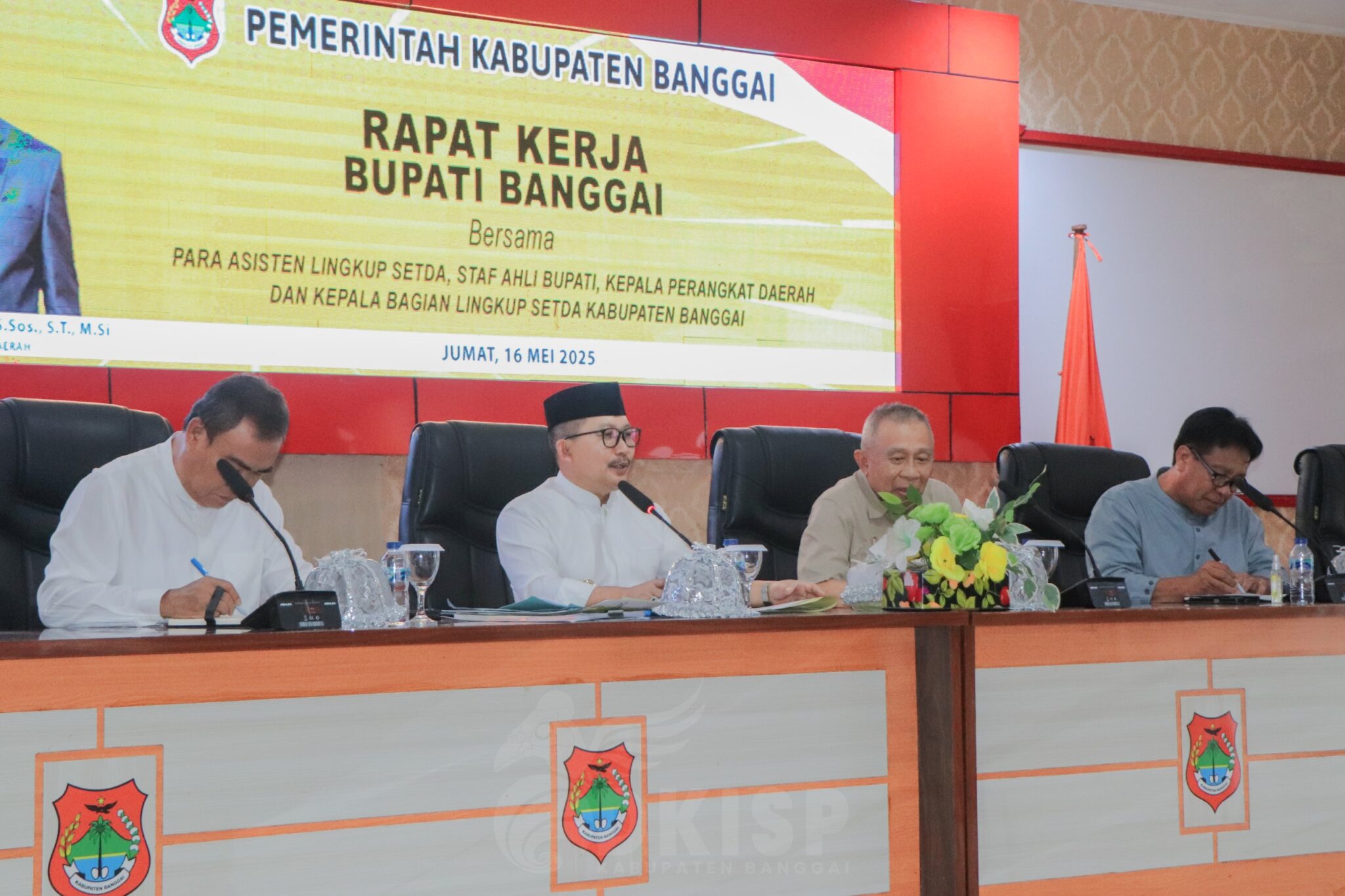 Instruksi ini disampaikan dalam rapat kerja bersama para asisten, staf ahli, kepala perangkat daerah, dan kepala bagian lingkup Setda Kabupaten Banggai pada Jumat, 16 Mei 2025, di Ruang Rapat Umum Kantor Bupati Banggai, Luwuk Selatan.