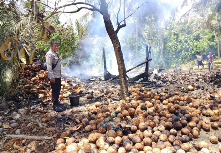 Bhabinkamtibmas Terjun TKP Kebakaran Lokasi Pembuatan Kopra diLuwuk Timur