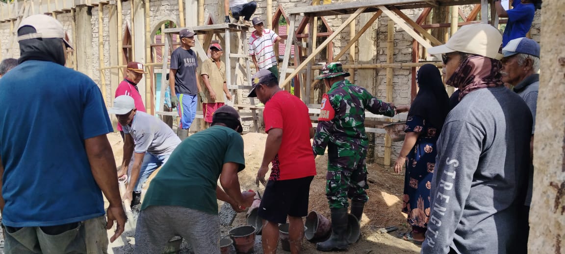Bhabinsa Liang Sertu Fatrin ikut berpartisipqsi dalam kerja Bhakti pembangunan mesjid Al-Ihkwan Desa Liang