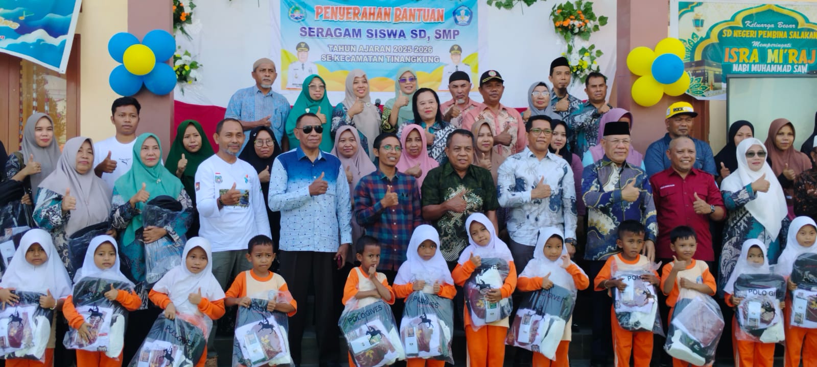mataSMScom. Bangkep. Pemerintah Kabupaten Banggai Kepulauan kembali menunjukkan komitmennya dalam mendukung peningkatan mutu pendidikan dengan menyerahkan bantuan seragam sekolah kepada siswa-siswi SDN Pembina Salakan, Jumat (23/1/2026).
