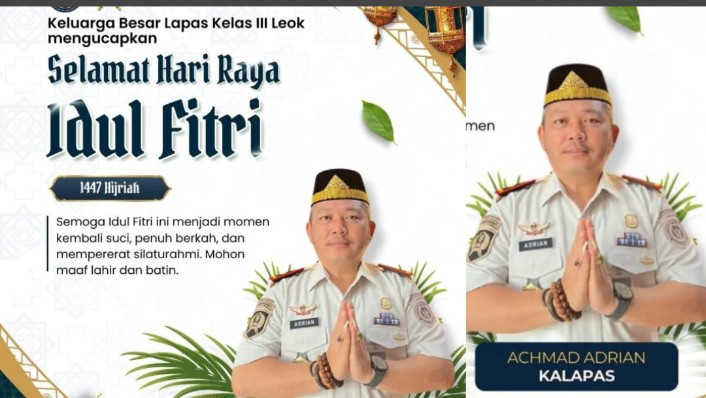 Dalam semangat Idulfitri 1447 H, kami segenap keluarga besar, lembaga Pemasyarakatan kelas III Leok. mengucapkan Selamat Hari Raya Idulfitri, 1447 H.