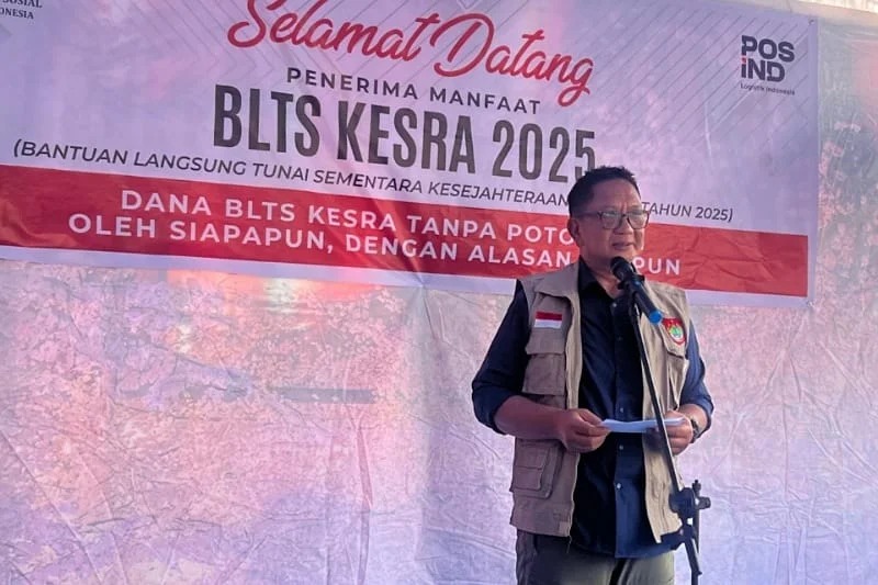 mataSMS.com – Kepala Dinas Sosial, Rudi Purwana K Bullah, meresmikan penyaluran Bantuan Langsung Tunai Sementara (BLTS) Kesejahteraan Masyarakat (Kesra), Selasa (25/11/2025) pagi.
