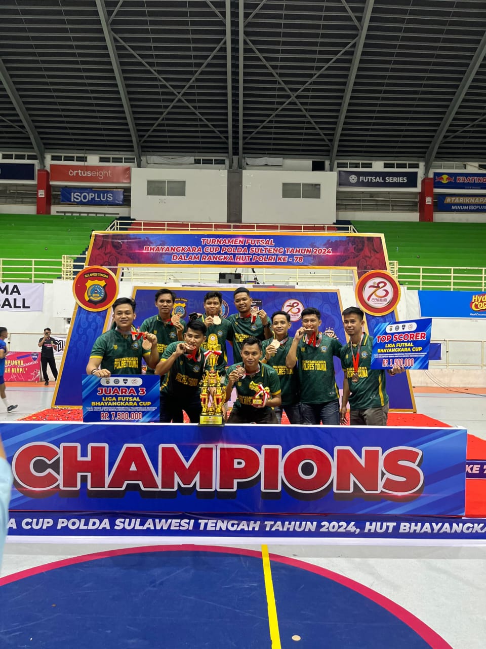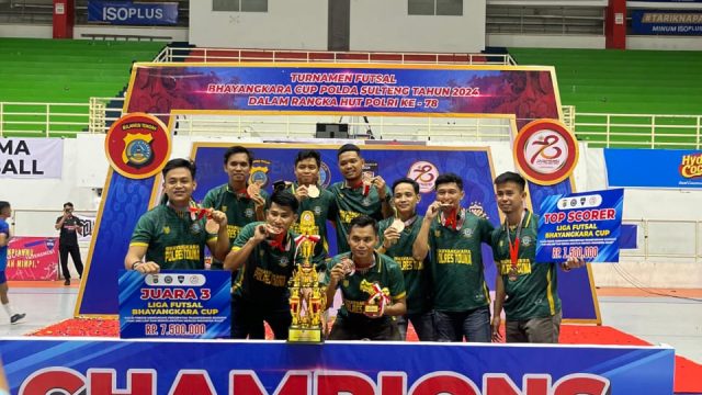 MATASMS, COM. Touna – Kepolisian Resor Touna berhasil finish di peringkat ketiga dan menyabet gelar pencetak gol terbanyak (top skor) dalam turnamen Bhayangkara cup Polda Sulteng di tahun 2024 yang diikuti oleh 24 tim Futsal dari Satuan Kerja (Satker) dan Polres jajaran Polda Sulteng.