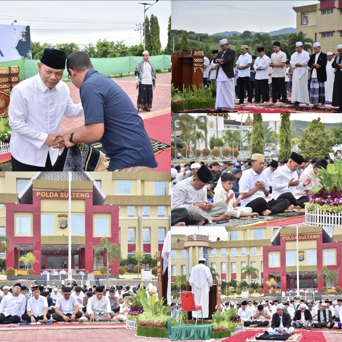 MATASMS, COM. Palu – Suasana khusyuk menyelimuti Lapangan Apel Polda Sulawesi Tengah (Sulteng) saat ribuan warga melaksanakan Shalat Idul Adha 1446 Hijriah, Jumat (6/6/2025). Lapangan utama Mapolda itu menjadi tempat ibadah terbuka sejak dini hari.