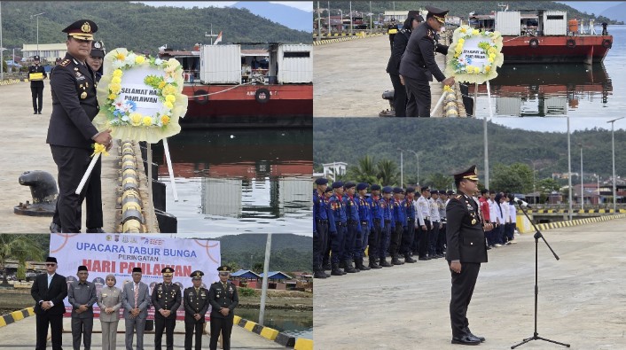 MATASMS, COM. MORUT.Dalam rangka memperingati Hari Pahlawan Nasional, Polres Morowali Utara melaksanakan Upacara Tabur Bunga di Pelabuhan Kolonodale Kecamatan Petasia, Senin (10/11/2025).