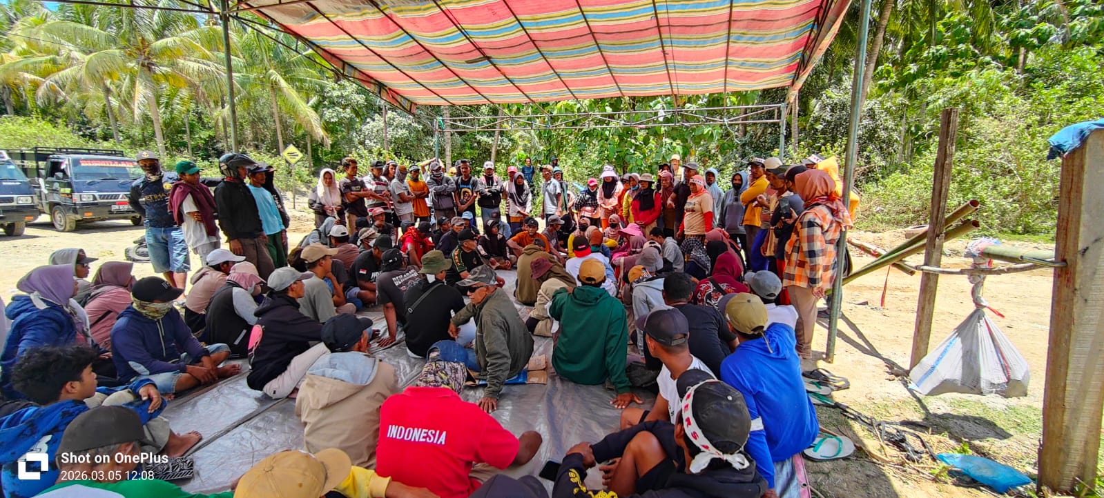 Dalam aksi yang dipimpin oleh Hasrin Karim pada Kamis (5/3/2026) pagi tersebut masa datang menggunakan mobil pick up, sepeda motor serta membawa sound system, spanduk, tenda dan lain sebagainya.