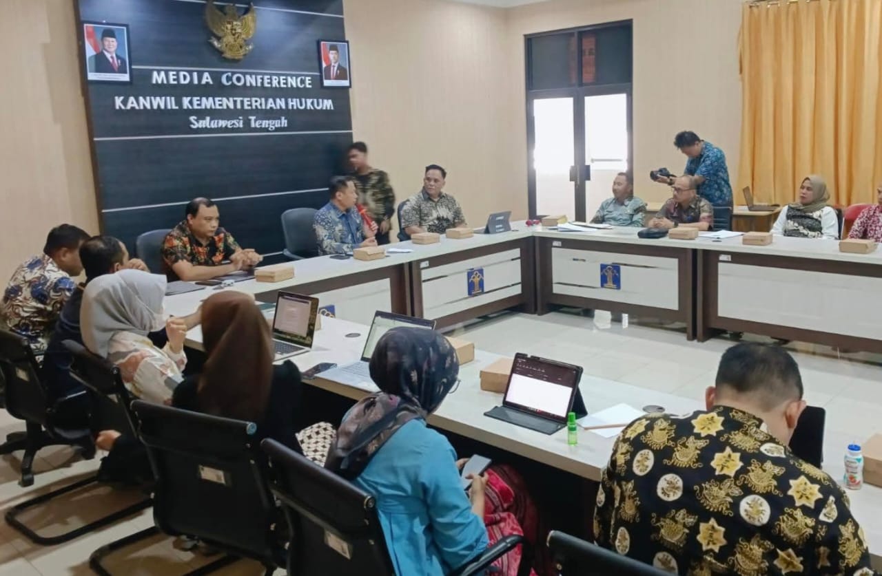 MATASMS, COM. PALU. Kantor Wilayah Kementerian Hukum dan Hak Asasi Manusia (Kemenkumham) Sulawesi Tengah menggelar Rapat Fasilitasi Harmonisasi terhadap dua Rancangan Peraturan Daerah (Ranperda) Kabupaten Banggai Kepulauan, bertempat di Ruang Rapat Kanwil Kemenkumham Sulteng Palu, Kamis (16/10/2025).