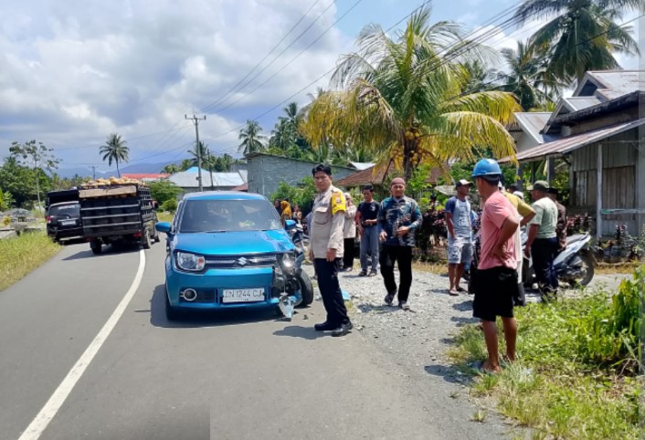 Motor Kebun Oleng Tabrak Mobil di Simpang Raya, Polsek Bunta Terjun TKP