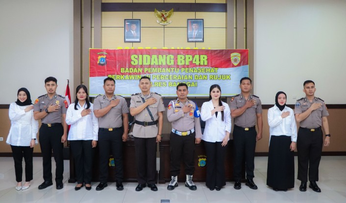 MATASMS, COM. BANGGAI. Kepolisian Resor Banggai, Kamis (17/7/2025) menggelar Sidang Badan Pembantu Penasehat Perkawinan Perceraian dan Rujuk (BP4R) bagi personel dan pasangannya yang mengajukan izin untuk menikah, di Aula Rupatama.
