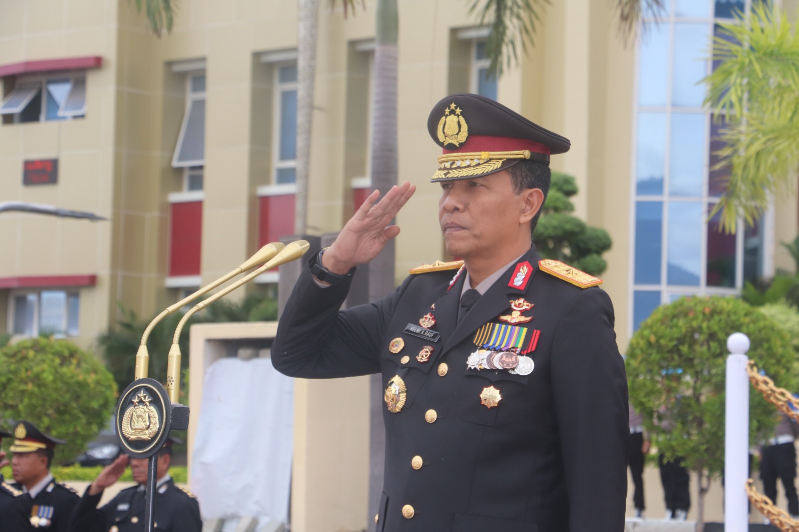 Bertindak sebagai Inspektur Upacara (Irup) Kapolda Sulteng Irjen Pol Dr. Endi Sutendi, S.I.K., S.H., M.H., yang diwakili oleh Wakapolda Brigjen Pol Dr. Helmi Kwarta Kusuma Putra Rauf, S.I.K., M.H..
