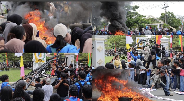 MATASMS, COM. PALU, Aksi unjuk rasa mahasiswa yang berlangsung di depan kantor DPRD Sulawesi Tengah, Senin (25/8/2025), berakhir ricuh. Awalnya aksi berjalan damai, namun situasi berubah anarkis ketika sejumlah peserta aksi merusak pagar pengaman gedung DPRD.