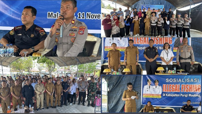 MATASMS, COM. Parigi Moutong – Dalam rangka menjaga kelestarian ekosistem laut serta menekan praktik penangkapan ikan secara ilegal (illegal fishing), Polres Parigi Moutong melalui Satuan Polisi Air dan Udara (Sat Polairud) bersama Pemerintah Kabupaten Parigi Moutong melaksanakan kegiatan Sosialisasi Ilegal Fishing kepada masyarakat pesisir pada Selasa, 11 November 2025 pukul 10.00 WITA di pusatkan di Desa Malalan Kec. Mepanga.