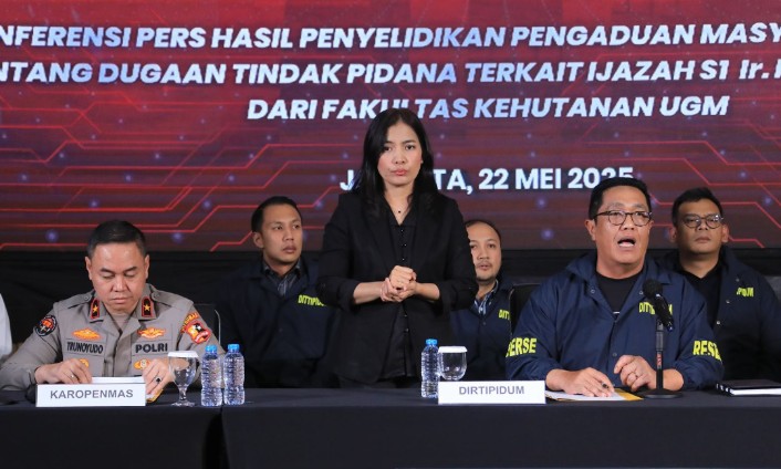 MATASMS, COM. Jakarta – Bareskrim Polri menegaskan bahwa dokumen ijazah Joko Widodo dinyatakan asli dan sah berdasarkan hasil penyelidikan dan uji forensik yang mendalam. Hal ini disampaikan dalam konferensi pers oleh Direktorat Tindak Pidana Umum (Dittipidum) Bareskrim Polri di Lobby Utama Gedung Awaloedin Djamin, Bareskrim Polri, Jakarta, Kamis (22/5).