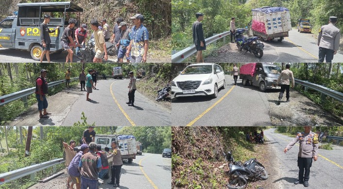 Polsek Nuhon Turun TKP Tabrakan di Tikungan Batu Hitam, Pemotor Dirawat Intensif