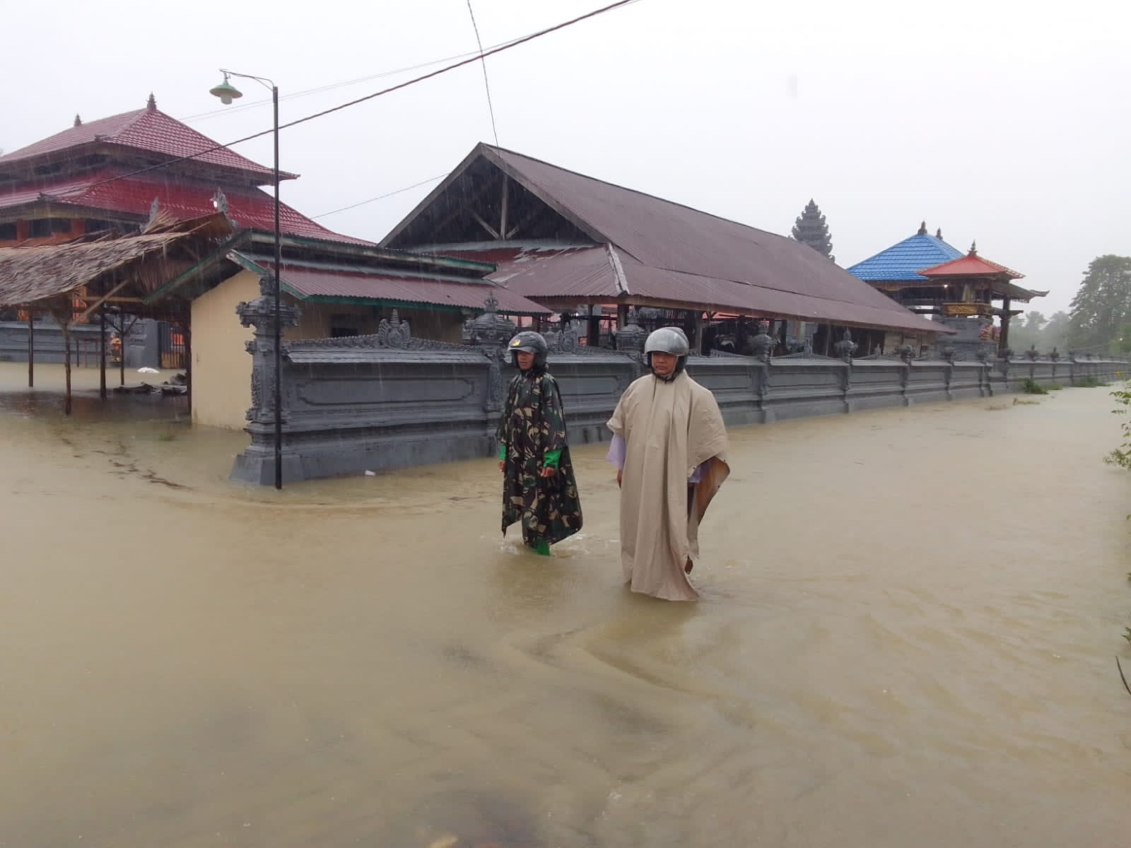 “Air meluap sampai ke badan jalan dan rumah warga, dengan ketinggian antara 30-50 cm, bahkan sebagian tempat hingga 1 meter,” bebernya.