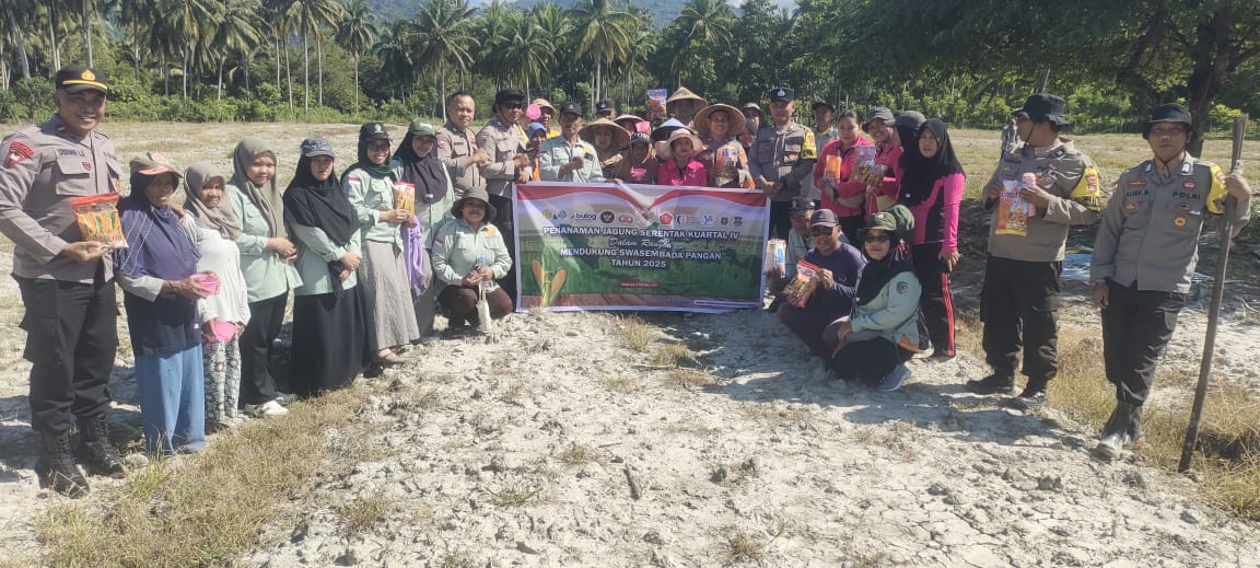 MATASMS, COM. Parigi Moutong – Dalam rangka mendukung program pemerintah di bidang ketahanan pangan dan meningkatkan kesejahteraan masyarakat melalui sektor pertanian, Polsek Tomini Polres Parigi Moutong melaksanakan kegiatan penanaman jagung serentak kuartal IV pada Rabu, 08 Oktober 2025 pukul 09.00 WITA. Kegiatan berlangsung di lahan milik Polri yang berlokasi di Dusun II, Desa Mepanga, Kecamatan Mepanga, Kabupaten Parigi Moutong.