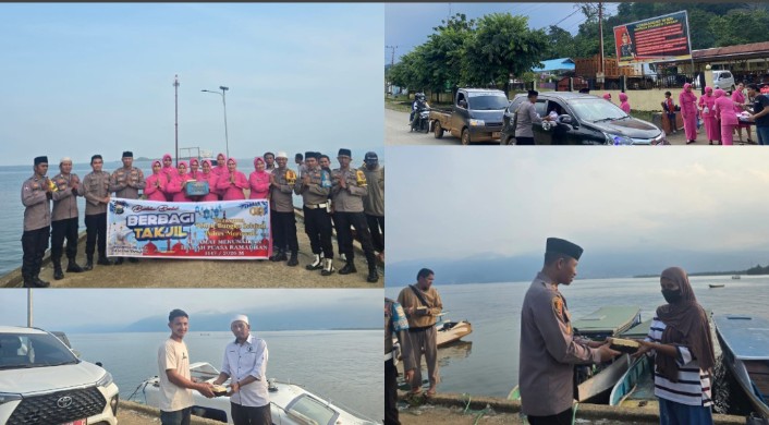 Pembagian Takjil di Pimpinan oleh Kapolsek Bungku Selatan AKP I Ketut Yoga Widata, S.H. bersama 19 Personel beserta Ibu ibu Bhayangkari Ranting Bungku Selatan.