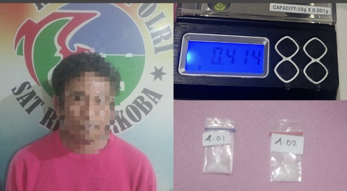 Dari hasil penggeledahan badan dan rumah tersangka, petugas berhasil mengamankan sejumlah barang bukti, yakni 2 (dua) paket yang diduga narkotika jenis sabu dengan berat brutto 0,414 gram, serta 1 (satu) buah kotak rokok merek Sampoerna berwarna putih yang diduga digunakan sebagai tempat penyimpanan sekaligus penyamaran barang haram tersebut.