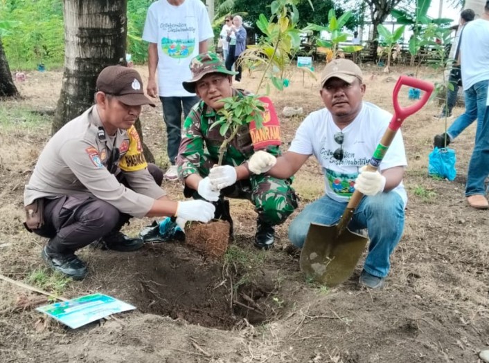 MATASMS, Com. Banggai. Sebagai bentuk sinergitas dan kepedulian terhadap lingkungan. Aparat TNI-Polri bersama Unsur Forkopimcam dan Pertamina Donggi Matindok melakukan penanaman bibit pohon, Sabtu (17/5/2025) pagi.